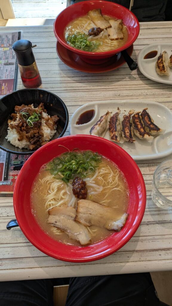 お昼は、小豆島ラーメンhishioエンジェルロード店@shodoshima_ramen_hishioに行き、ひしおそば(ラーメン)と餃子と島飯を頼みました(`・ω・´)